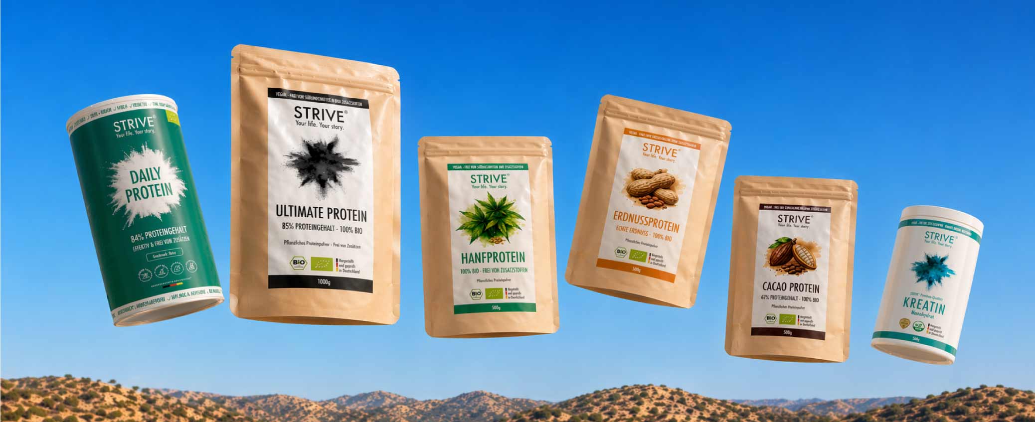 STRIVE Produkte bringen alle Vorteile von Proteinen mit sich und das ganz ohne die gängigen Nebenwirkungen klassicher Proteinpulver.